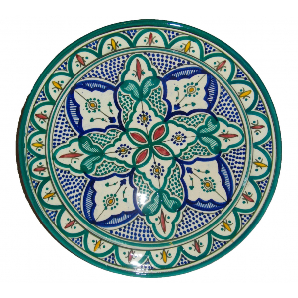Superbe plat émaillé Fabriqué et peint à la main par les artisans de Safi, spécialistes incontestés de la poterie Marocaine. Ce plat de grande taille est idéal pour décorer une table. Peut servir aussi de corbeille à fruits.